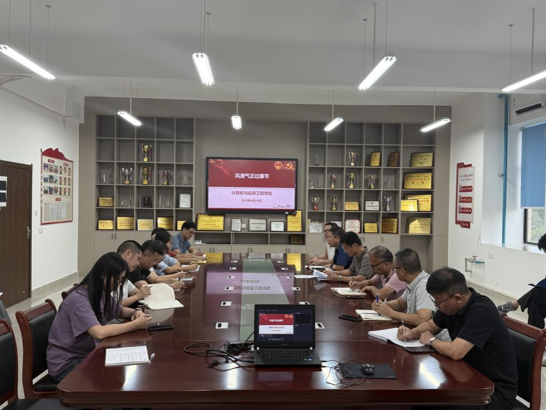 9月29日下午,计算机与信息工程学院党总支组织召开纠“四风”、树新风专题会议,会议主题聚焦“风清气正过廉节”。本次会议由学院党总支书记胡培业主持,学院领导班子、学院办公室、各专业负责人、实训室全体人员及所有辅导员参加会议。