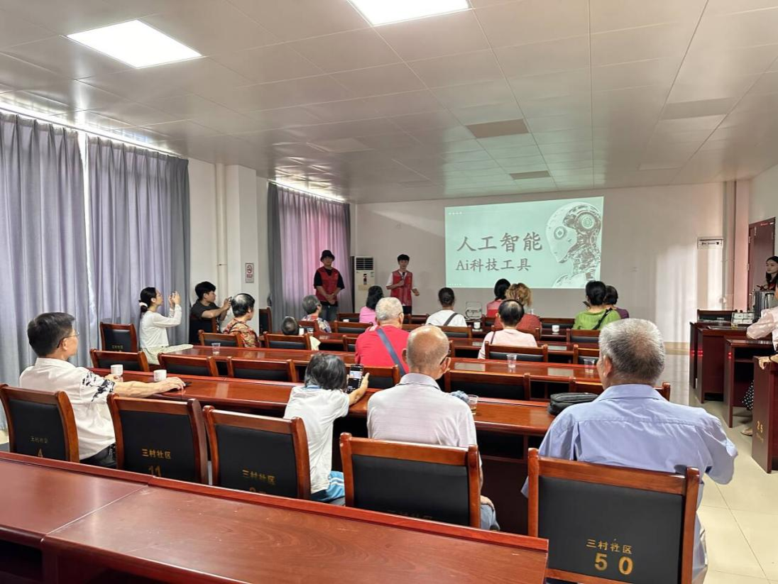 为推进“百县千镇万村高质量发展工程”走深走实,落实广东大学生“百千万工程”突击队行动,深化校地共建,充分发挥高校专业优势服务社区养老需求,7月8日,由计算机与信息工程学院辅导员廖伟、黄崇晴、陈妍洁带领12名学生志愿者组成的“银龄春风”“百千万工程”突击队,联合松山街道三村社区开展“青春伴夕阳·携手共前行”养老服务志愿活动。志愿团队将专业特长与人文关怀相结合,通过健康科普、科技助老、暖心陪伴等形式,为50余位社区长者提供多元化服务,探索智慧养老新路径。