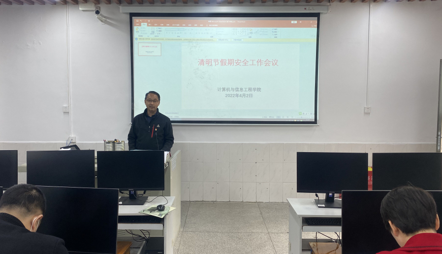 4月2日,计算机与信息工程学院召开全院清明假期安全工作会议,会议主要学习习近平总书记关于统筹疫情防控和经济社会发展重要论述和重要指示批示精神,贯彻落实党中央、国务院、省委、省教育工委和学校党委疫情防控部署要求。学院党总支副书记刘攀桂主持会议并讲话。