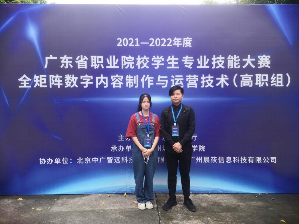 近日,在2021-2022年度广东省职业院校学生专业技能大赛“全矩阵数字内容制作与运营技术”赛项中,经过激烈角逐,我校计算机与信息工程学院2020级数字媒体技术专业学生覃雨恩荣获一等奖(指导老师:曾万隆),黄润琳荣获三等奖(指导老师:曾庆宇)。