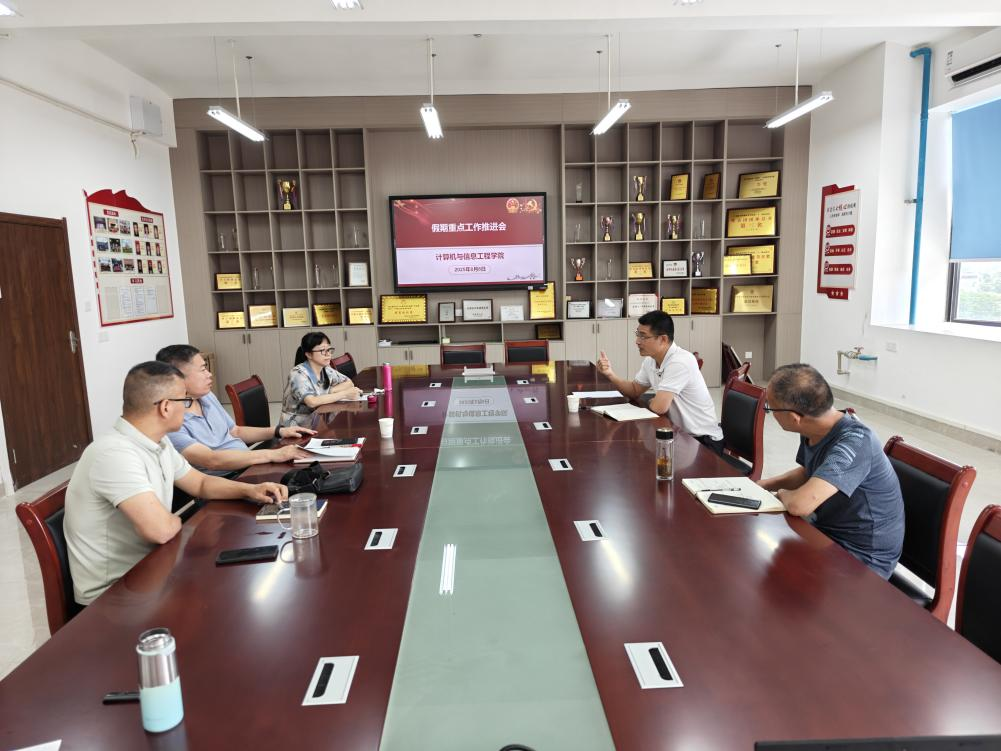 为扎实推进暑期学院重点工作,确保新学期教育教学工作顺利开展,8月8日,计算机与信息工程学院组织召开暑假工作推进专题会议,学院全体领导班子成员参加会议。
