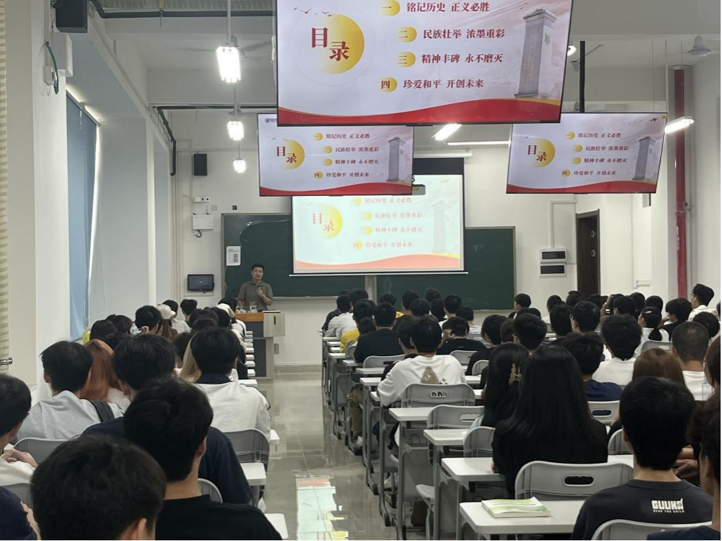 胡培业以“纪念抗战胜利 坚定民族信念”为主题,通过鲜活的历史事件、感人的英雄事迹,生动再现了中国人民在抗日战争中展现出的顽强抗争精神与家国情怀。他强调,青年一代要铭记历史、缅怀先烈,以坚定的民族信念扛起时代赋予的使命担当。