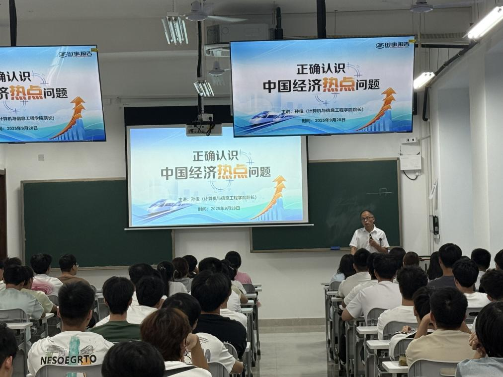 为深入推进思政教育与价值引领,引导青年学子坚定理想信念、明晰时代责任,9月29日,计算机与信息工程学院分别开展书记、院长思政第一课,学院党总支书记胡培业、院长孙俊分别以专题授课形式,为学院学子带来了两场主题鲜明、内涵深刻的思想政治教育课。