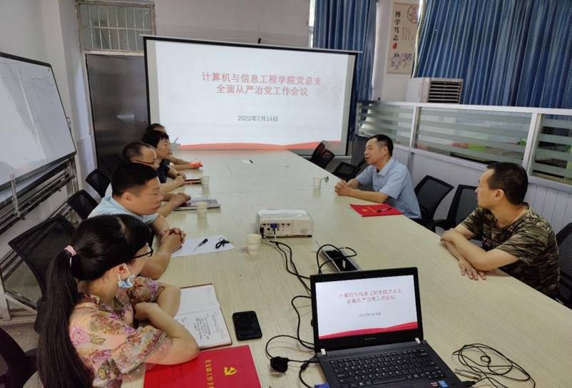 会议首先听取了计算机与信息工程学院党总支书记刘攀桂所作的2022年上半年全面从严治党、加强党风廉政建设与反腐败工作情况的汇报。学院院长王玉贤与其他参会同志结合岗位职责进行了补充说明。