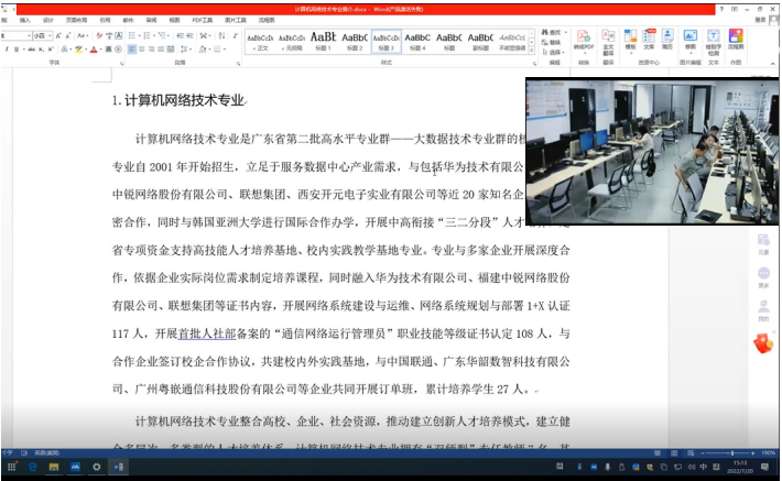 受疫情影响,本次论证会采用线上、线下相结合的方式,以线上分组论证的形式进行。各小组以专业为单位,就人才培养目标、职业能力分析、专业服务面向及岗位面向的调整、专业群课程体系及专业课程体系构建等情况向相应专家组进行报告。