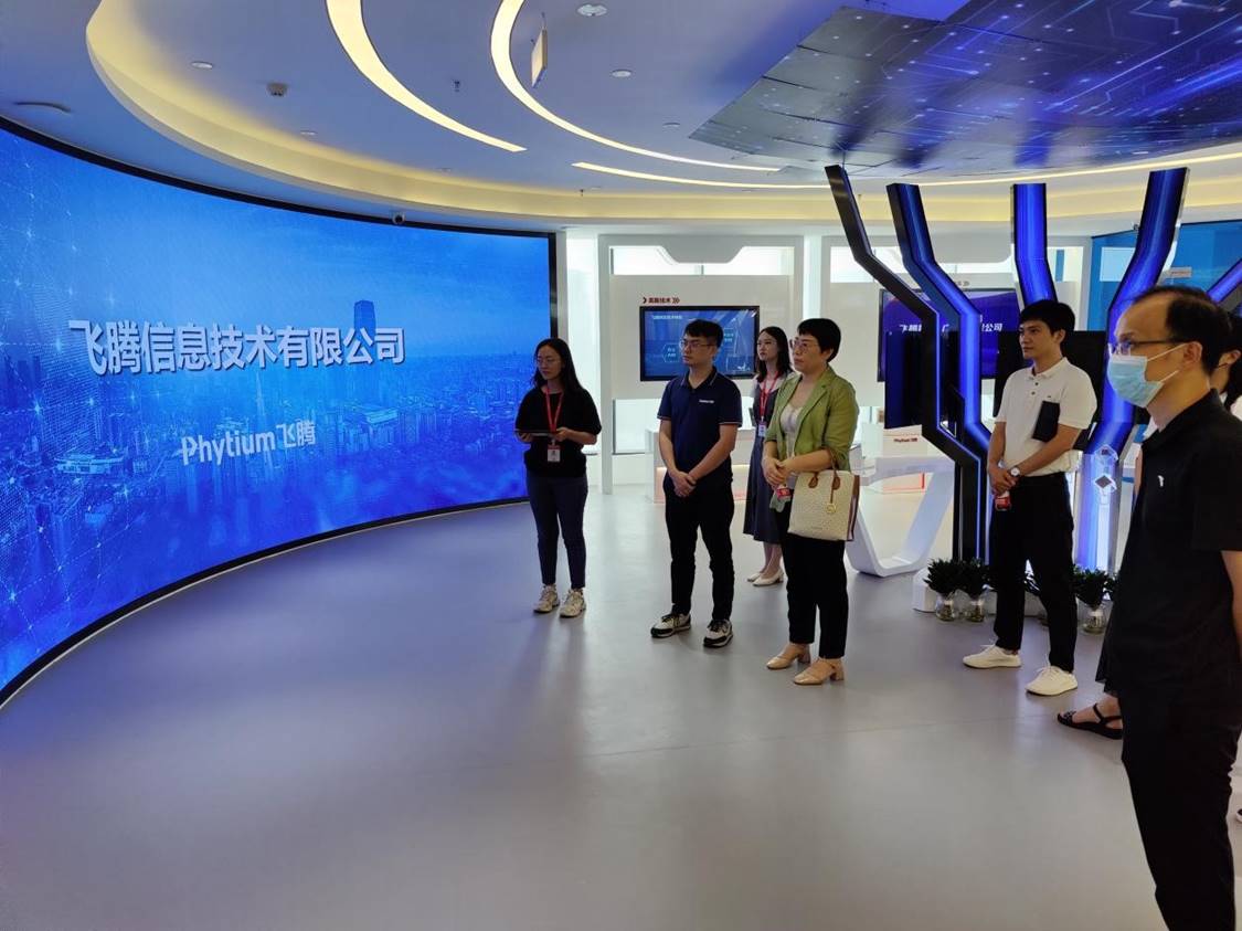 随后,王玉贤一行前往飞腾信息开展调研。陆永东经理介绍,飞腾信息是国内领先的自主核心芯片提供商,致力于国产高性能、低功耗通用计算微处理器的设计研发和产业化推广。随后,校企双方围绕信创专业建设、校企合作、人才培养、教学改革等话题开展座谈。
