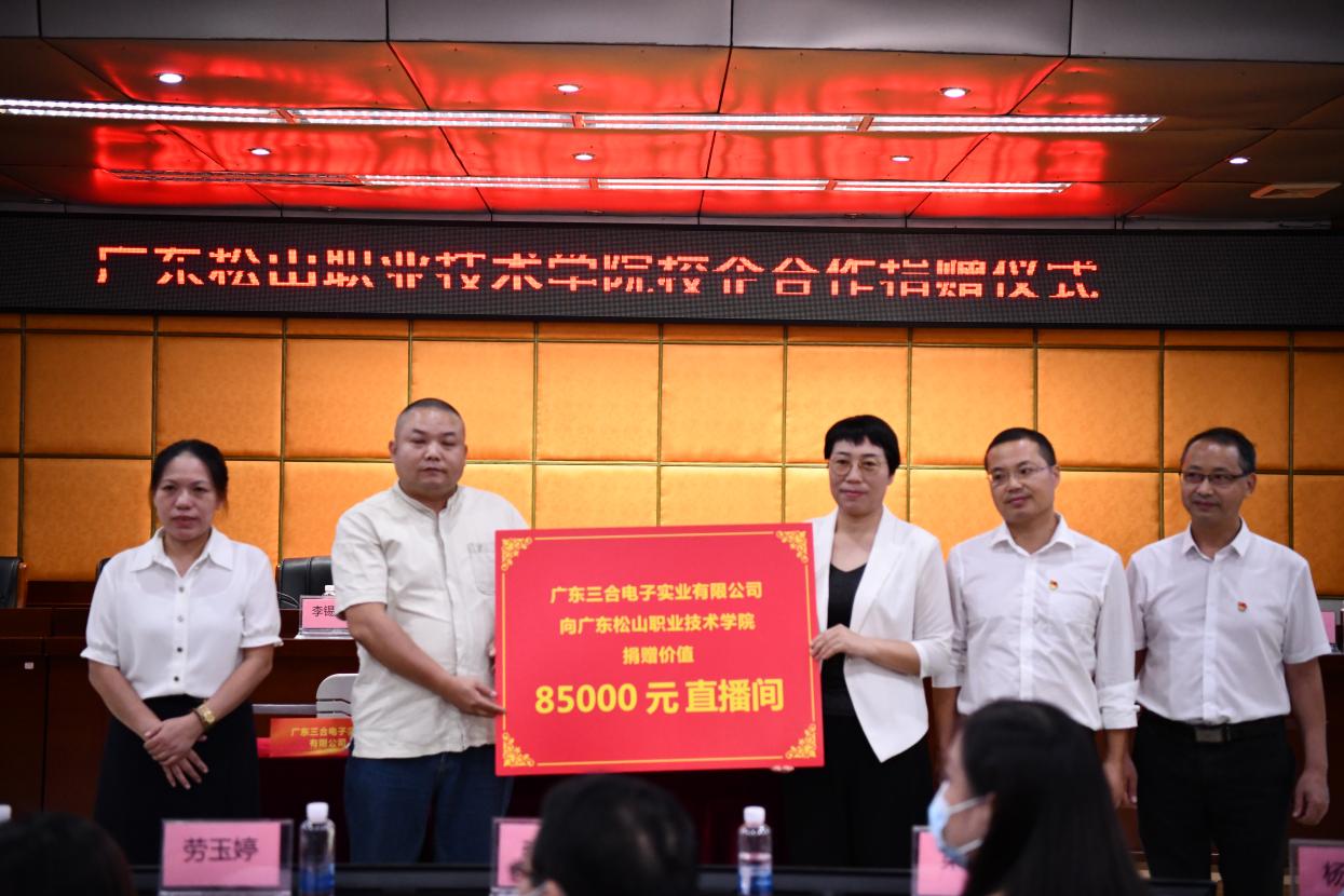 接着,会议举行捐赠仪式,由乳源县云门山旅游景区开发有限公司和广东三合电子实业有限公司分别向学校捐赠“云门山杯”抖音直播大赛基金2万元以及价值8万5千元直播间。王玉贤和外语商务学院副院长高恒冠代表学校与捐赠企业代表签订捐赠协议并合影留念。