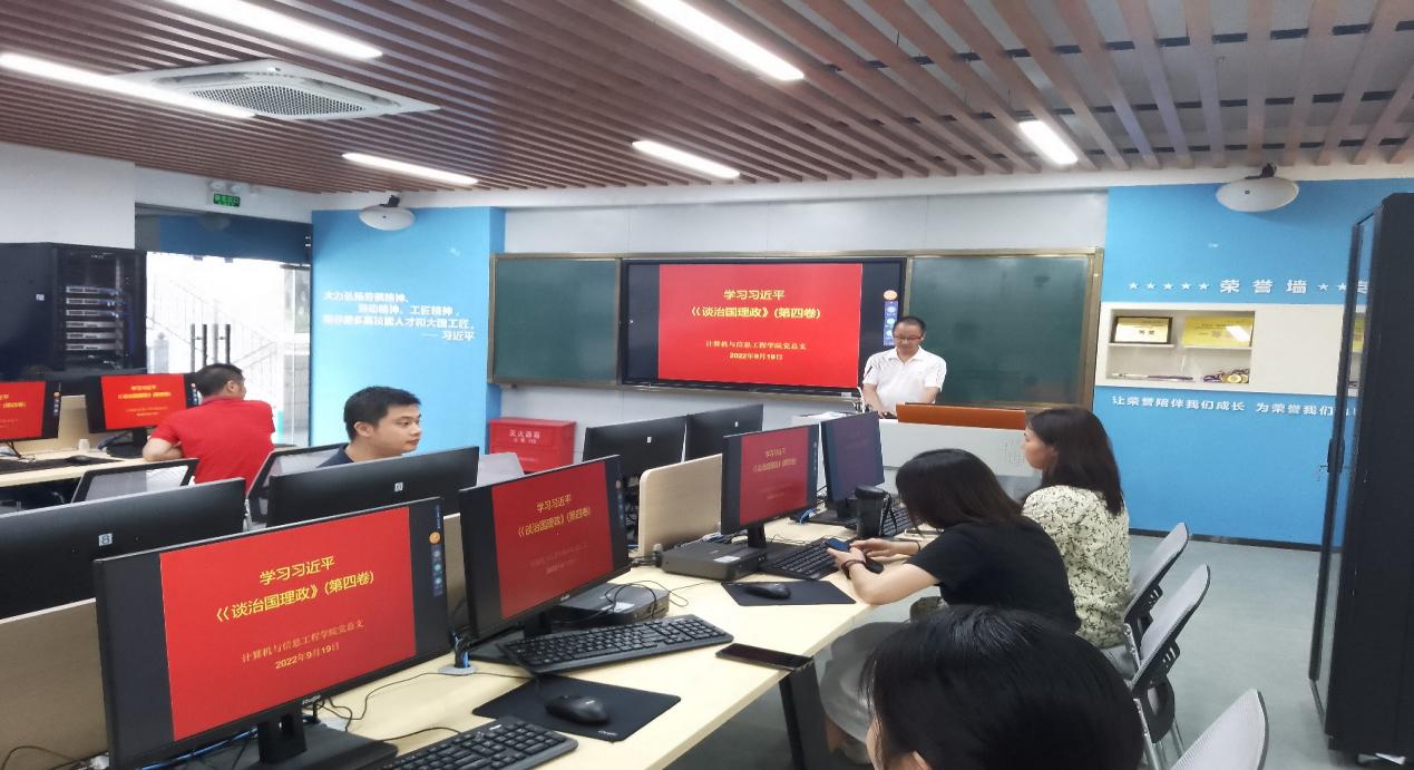 9月19日,计算机与信息工程学院党总支在计算机楼306召开深入学习《习近平谈治国理政》第四卷动员大会,计算机与信息工程学院党总支书记刘攀桂同志主持,学院全体教师参会。