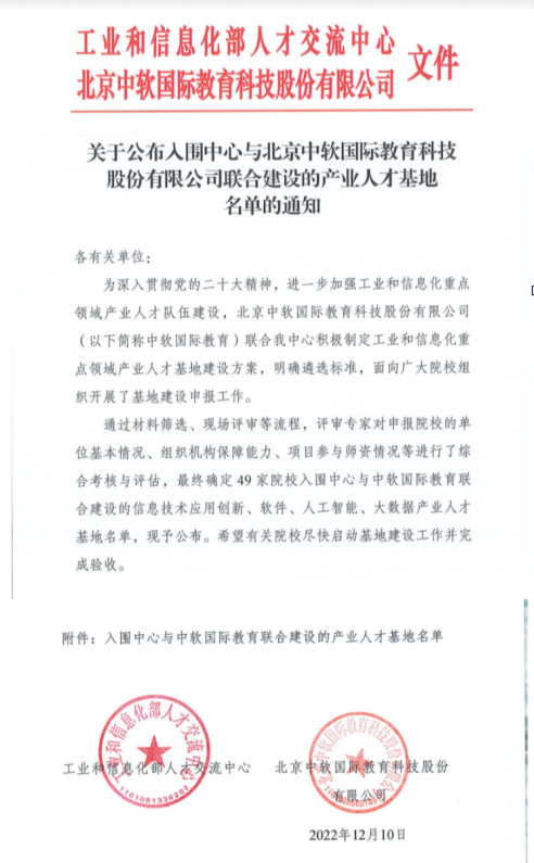 近日,工业和信息化部人才交流中心官网公布了工业互联网产业人才基地名单,经专家评审,全国共有49所高校入围工业和信息化重点领域产业人才基地名单,我校成功入选,我校计算机与信息工程学院工业和信息化重点领域产业人才基地(大数据产教融合基地)成功立项。