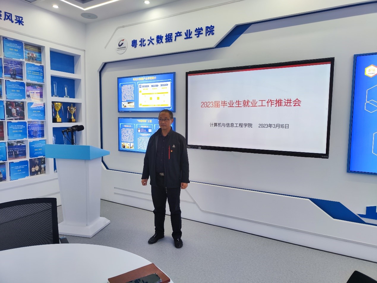 为贯彻落实学校《关于召开2023届毕业生就业工作动员会的通知》(粤松院招就〔2022〕41号)精神,3月16日下午,计算机与信息工程学院于计算机楼1楼会议室召开2023届毕业生就业工作推进会,对2023届毕业生就业工作再部署、再落实。会议由学院党总支书记刘攀桂同志主持,学院全体教师参加。