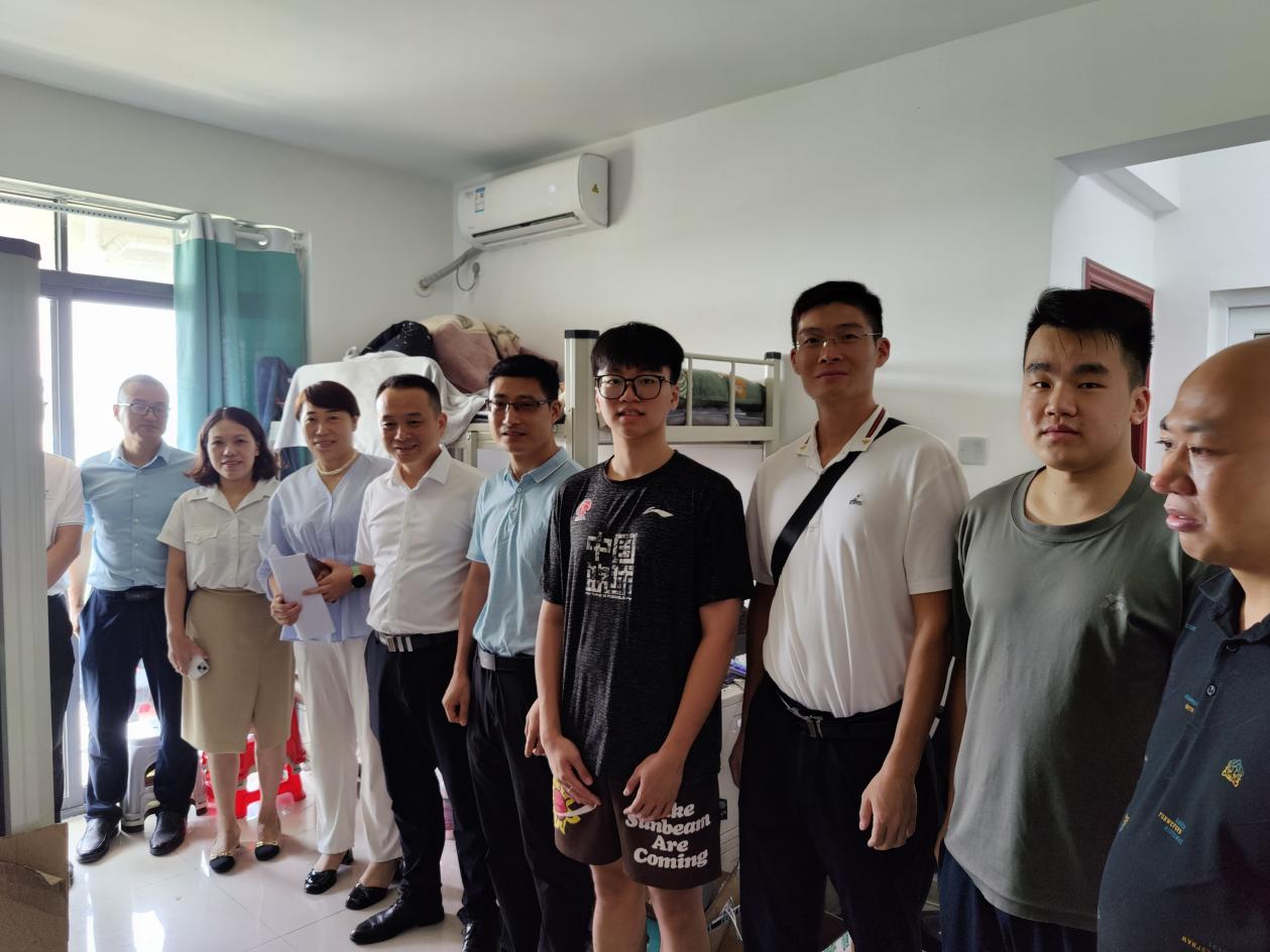为了给粤北大数据产业学院学生提供安全、舒适的学习生活环境,8月23日,副校长张志带领相关部门到粤北大数据产业学院学生宿舍考察调研,实地查看学生宿舍家具、设备配置情况,了解学生学习、生活中存在的困难并给予及时解决。张志表示,学校为产业学院的学生创造良好的学习、生活条件,同学们要珍惜到产业学院学习的机会,积极调整状态,全身心地投入到学习中。