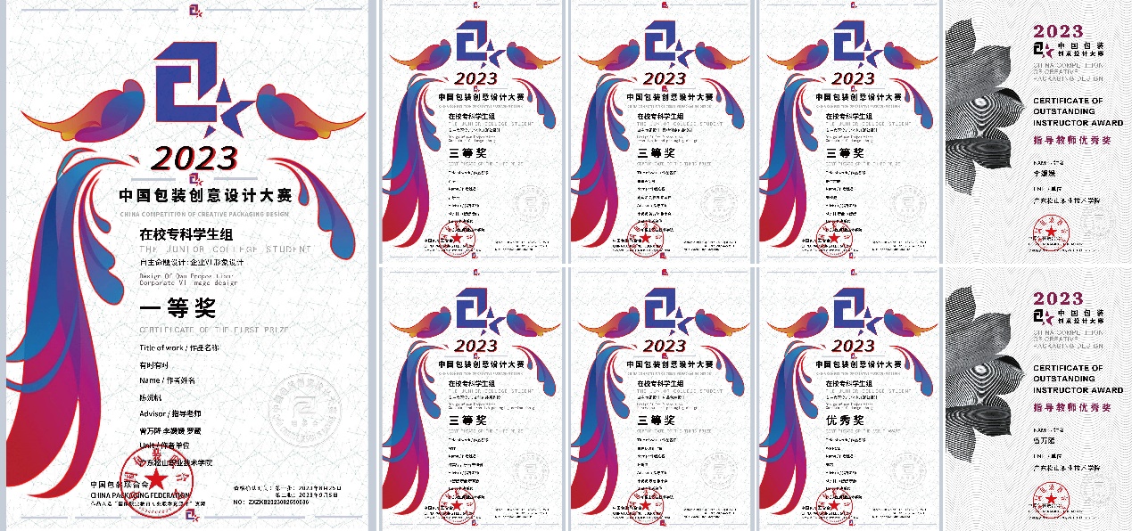 近日,2023年中国包装创意设计大赛评审结果公布,我校计算机与信息工程学院数字媒体技术专业学生荣获17项大奖,其中一等奖1项、三等奖5项、优秀奖11项,李媛媛、曾万隆老师获得指导教师优秀奖。