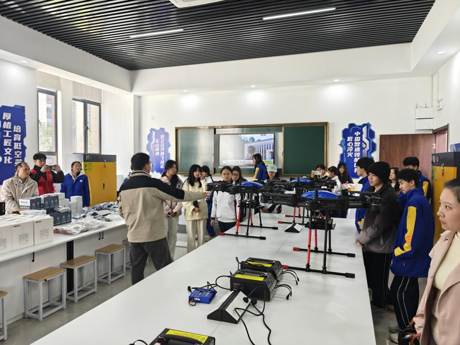 随后,由学院志愿者引导中职学校师生,依次参观了低空经济产业学院、莲花校区图书馆、室内体育馆和室外体育场等,全面了解了学校的教学设施与校园文化。活动最后,全体师生在莲花校区图书馆前合影留念,活动圆满结束。